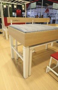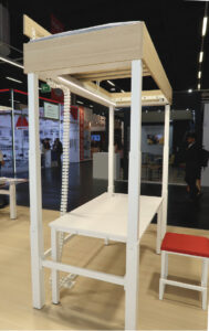 Obrovský úspěch na veletrhu zaznamenal výškově stavitelný rám postele vyvinutý pro projekt malometrážního bydlení, které je nyní bráno jako celosvětový megatrend. O co přesně šlo? O možnost nastavení výšky postelového rámu od 935 do 2135 mm, které je velmi snadné díky elektrickému ovládání. Pod postel, která není přes den využívána a je vysunuta do nejvyšší pozice, je možné umístit například pracovní stůl. Toto funkční a zajímavé řešení ocení především mladí lidé pracující z domova žijící v malých bytech. Jedinečný exponát upoutal pozornost kolemjdoucích a sklidil řadu pozitivních reakcí. Cíl ukázat netradiční a atypická řešení vyrobená na míru a přizpůsobená požadavkům prostoru a činnostem uživatele byl tak splněn do posledního detailu.