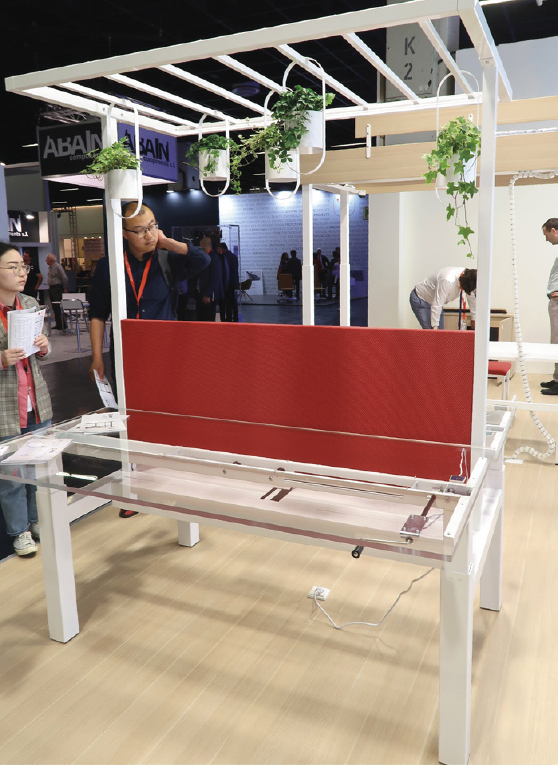 Kromě novinek nechyběly na expozici ani již zavedené produkty doplněné o zajímavé detaily přinášející uživateli benefity ve formě zeleně či osvětlení pracovního místa (viz produkt Tandem Garden, který kombinuje květiny a LED pásky nad každým pracovním místem).